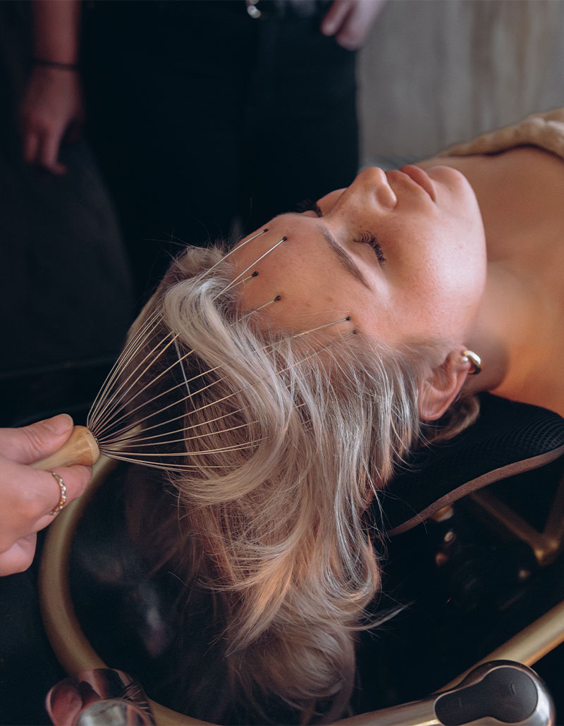 Kopfhautanalyse, Haaröl-Therapie, Shampoo. Haar-Maske, Conditioner, Kräuterpflege, Kopf-Nacken-Dekolletee-Spa-Massage, Gesichtsmaske, Gua-Sha-Massage mit Feuchtigkeitscreme, Gesichtsmassage